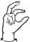 На ћирилици написано ОЗРЕН МИТРОВИЋ састоји се из 13 слова [?]. Исписано ћириличном једноручном азбуком за глувонеме: